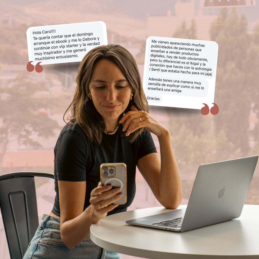 🗣️ “No tenía ni idea de por dónde empezar. Gracias a Caro conecté con mi propósito y hoy estoy creando mi primer producto digital.”