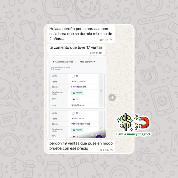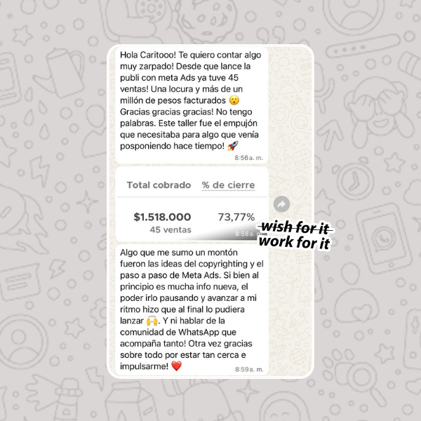 💬 Acceso a un grupo exclusivo de WhatsApp donde vas a poder compartir tus logros con una comunidad hermosa de mujeres emprendedoras como vos.