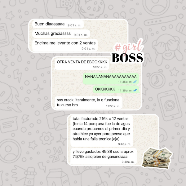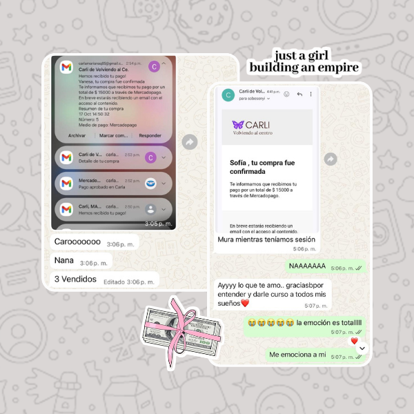 💬 Acceso a un grupo de WhatsApp donde vas a poder compartir tus logros con una comunidad hermosa de mujeres emprendedoras como vos.